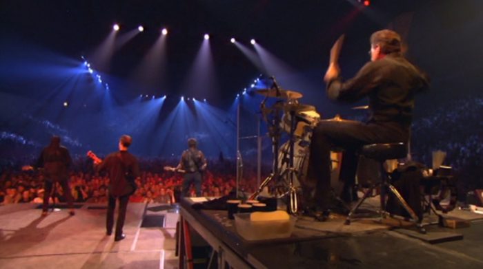 Bruce agreed to be the lead artist on the 2002 VMAs, but only if he could do it 30 blocks uptown with the Hayden Planetarium in the background. Directed by Hamish Hamilton, “The Rising” was performed in a rainstorm–which only enhanced the power of the song.